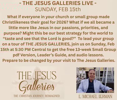 The Jesus Galleries Live is a recorded webinar designed to introduce the author, the book, and to train both experienced and first-time small group leaders - all to encourage and facilitate everyone to lead a group study through The Jesus Galleries (Lite).